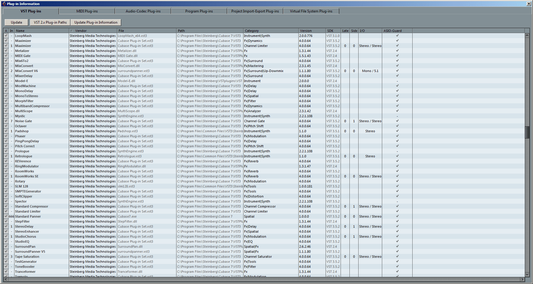 One particularly interesting new innovation in Cubase 7 (which has far greater importance than its half page in the manual would suggest) is the ASIO-Guard feature. Enabled on a per-plugin basis, it pre-processes any audio channels that do not have to be processed in real time, much like a selective variable audio buffer. It aims to help avoid dropouts caused by CPU load spikes, which in turn should help you work at lower buffer sizes, reducing latency. There are some restrictions on the types of plugins with which it will work, though on the whole it seems effective.