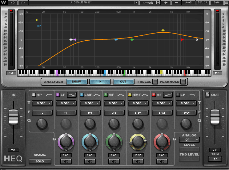 It wouldn’t be ‘80s dance without some overactive claps and the DMX handclaps are so good, we just couldn’t resist going to town. We add another copy of Waves H-EQ to reduce lows and highs.